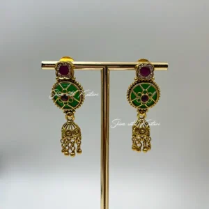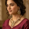 Aarohi Emerald Kundan Necklace Set is a timeless blend of royal elegance and traditional craftsmanship. Designed with a graceful line of teardrop kundan stones, the necklace features a striking emerald green centerpiece framed in antique gold tones. Finished with delicate pearl drops and matching earrings, this set is ideal for brides, wedding functions, and luxurious festive celebrations.