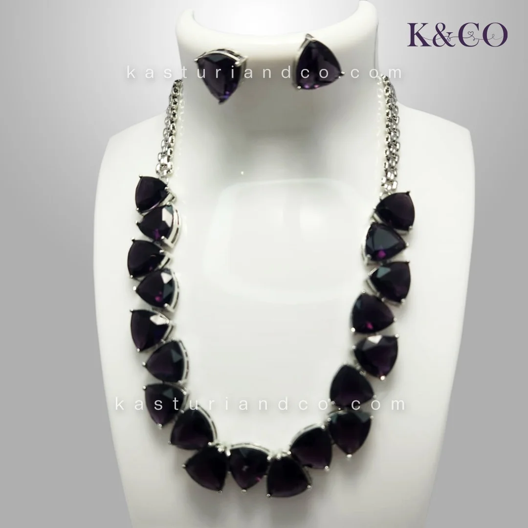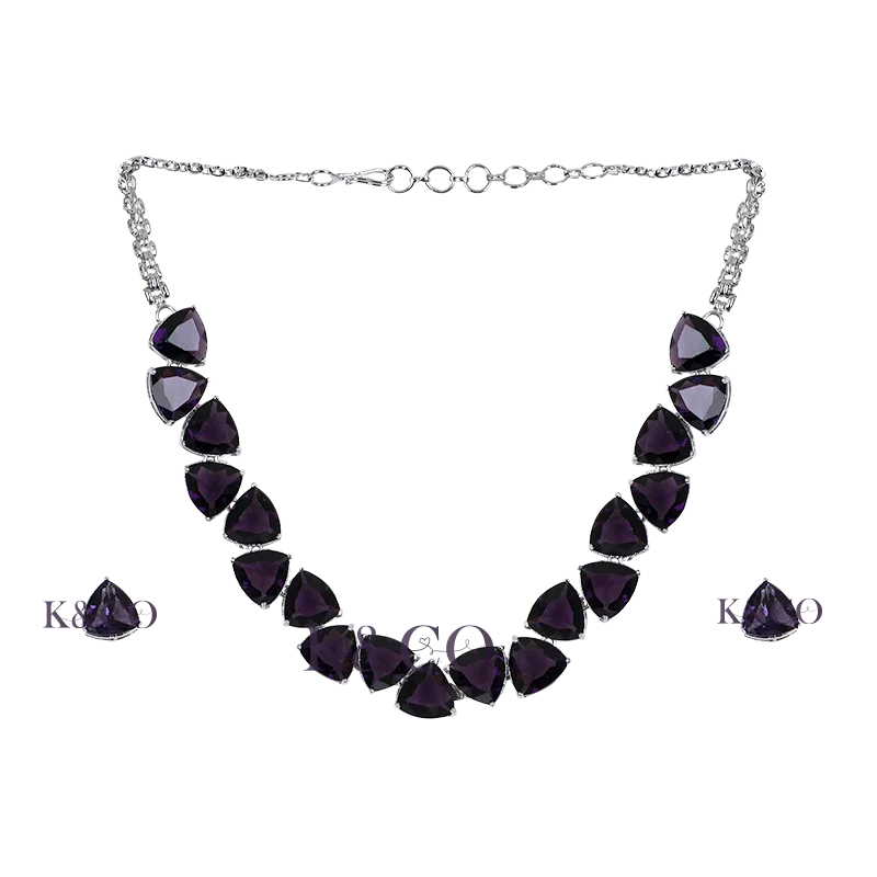 Crystal Necklace in purple colour to wear for a sophisticated and charming look. This necklace set has a soft radiance to add regality to any ensemble, making it a stunning accessory for formal occasions. You would love this necklace with the brilliance of crystal and a fascinating purple colour to complement your look.