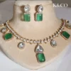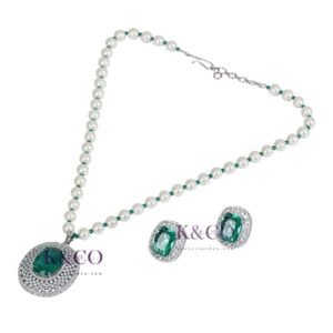 CZ & Pearls Statement Necklace with radiant pendant with cubic zirconia around a chunky doublet stone in pendant.