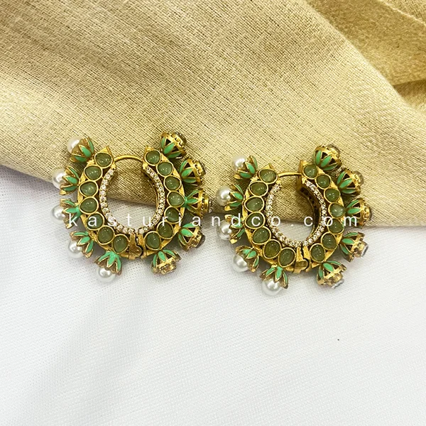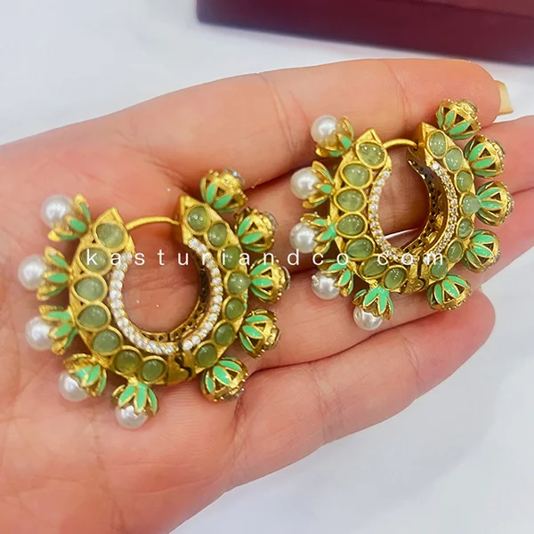 Traditional Kundan Jhumka Earrings with pearl accents are a perfect blend of tradition and elegance. Crafted with intricate detailing, vibrant gemstones, and delicate pearl embellishments, they exude royal charm. Lightweight and comfortable, these earrings are ideal for weddings, festivals, and ethnic celebrations.