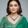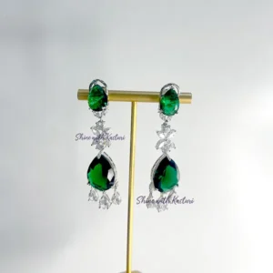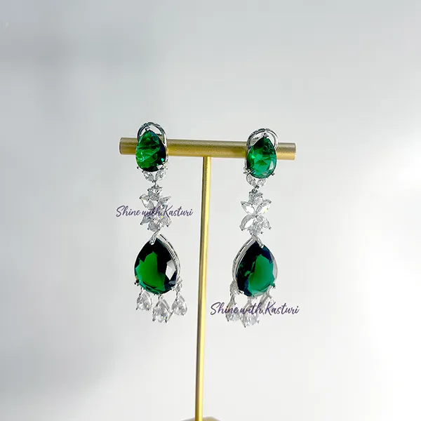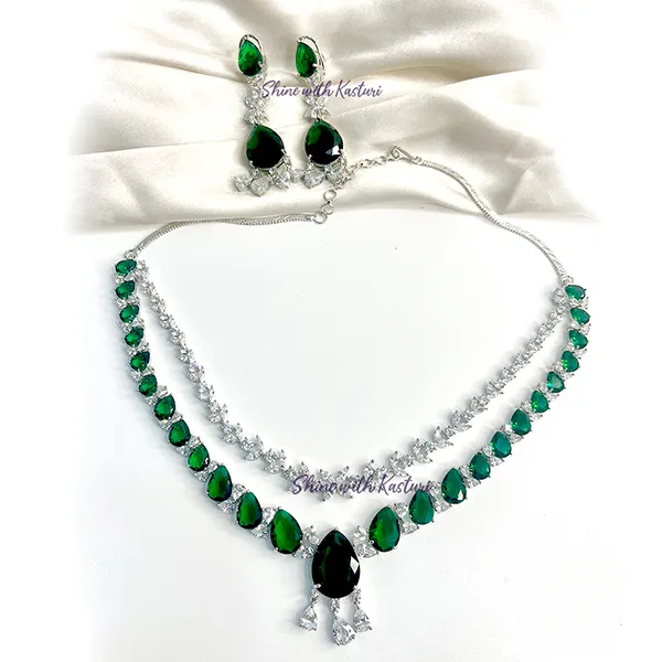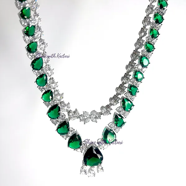 Layered Cubic Zirconia Necklace with green stones and embellished with CZ , highly durable rhodium plating for longevity.