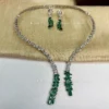 Beautiful Choker with evening dress, shop cubic zirconia chain links in silver plating and a pear shaped Doublet Stone as pendant. Long earrings with stone in silver plating to sum it up as a simple and elegant necklace for party.