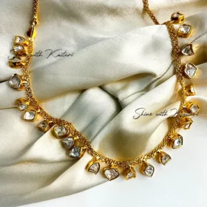 Kundan Classic Necklace with Gold Plating is a stunning fusion of traditional charm and royal craftsmanship. Adorned with detailed Kundan stones and finished in a radiant gold polish, this necklace captures the essence of timeless Indian elegance. Ideal for brides, festive events, or special occasions, it pairs beautifully with both sarees and lehengas.