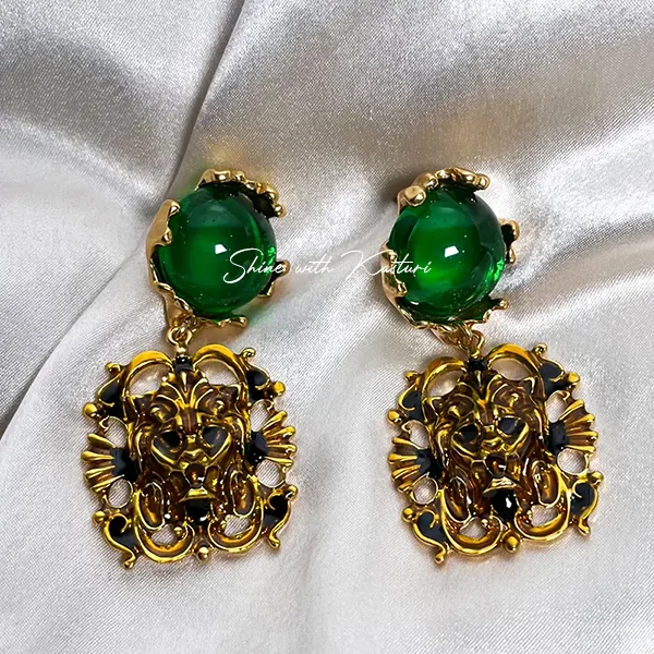 Lion Earrings with Emerald Stone