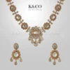 Add timeless charm with the Purple Kundan Pendant Necklace and Earrings Set by K&Co. Featuring radiant Kundan stones in a rich purple hue, this intricately designed set complements both traditional and modern outfits for any special occasion.