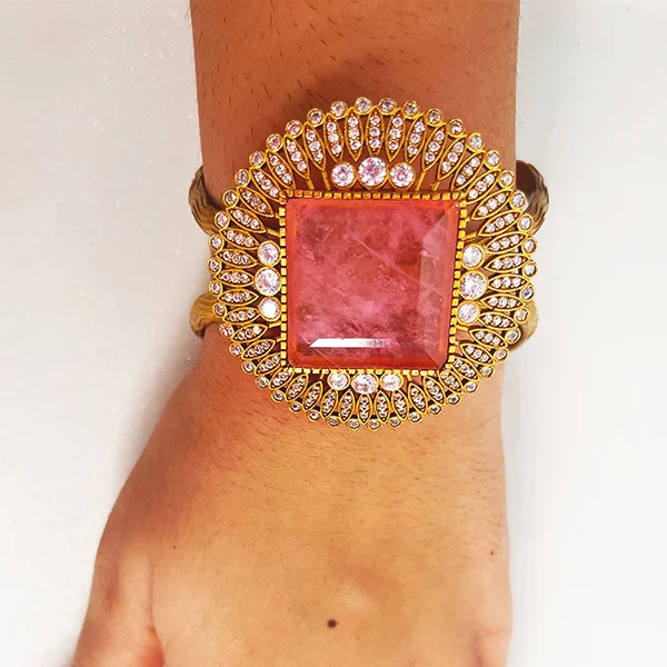 The Saru Designer Handcuff with Stone combines elegance and sophistication, crafted with precision to complement any outfit. A timeless jewelry piece from Kasturi & Co, designed for versatile styling, making it perfect for both casual and special occasions.