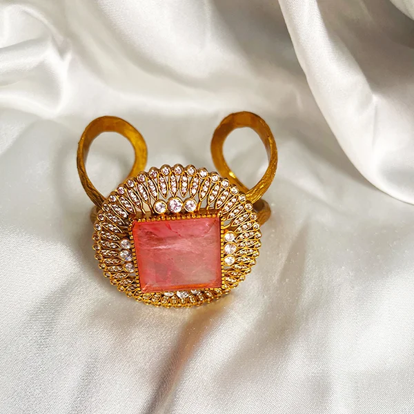 The Saru Designer Handcuff with Stone combines elegance and sophistication, crafted with precision to complement any outfit. A timeless jewelry piece from Kasturi & Co, designed for versatile styling, making it perfect for both casual and special occasions.