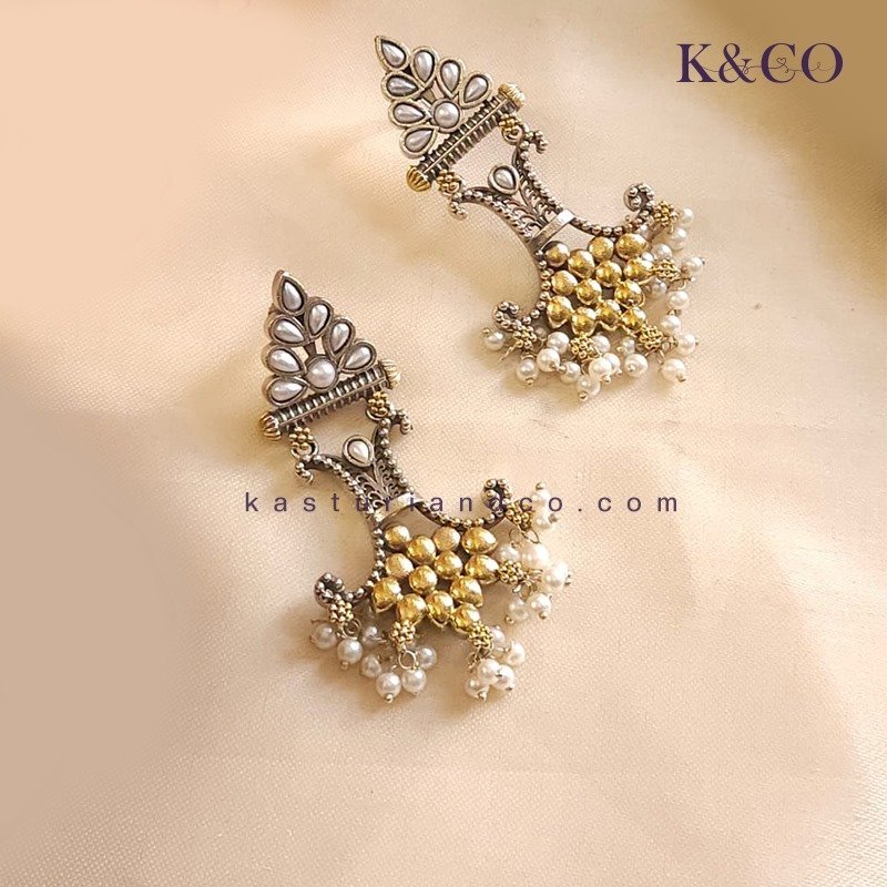 Flaunt this oxidised silver earrings with an angelic look with the shiny hangings to grace a costume on a festive event.
